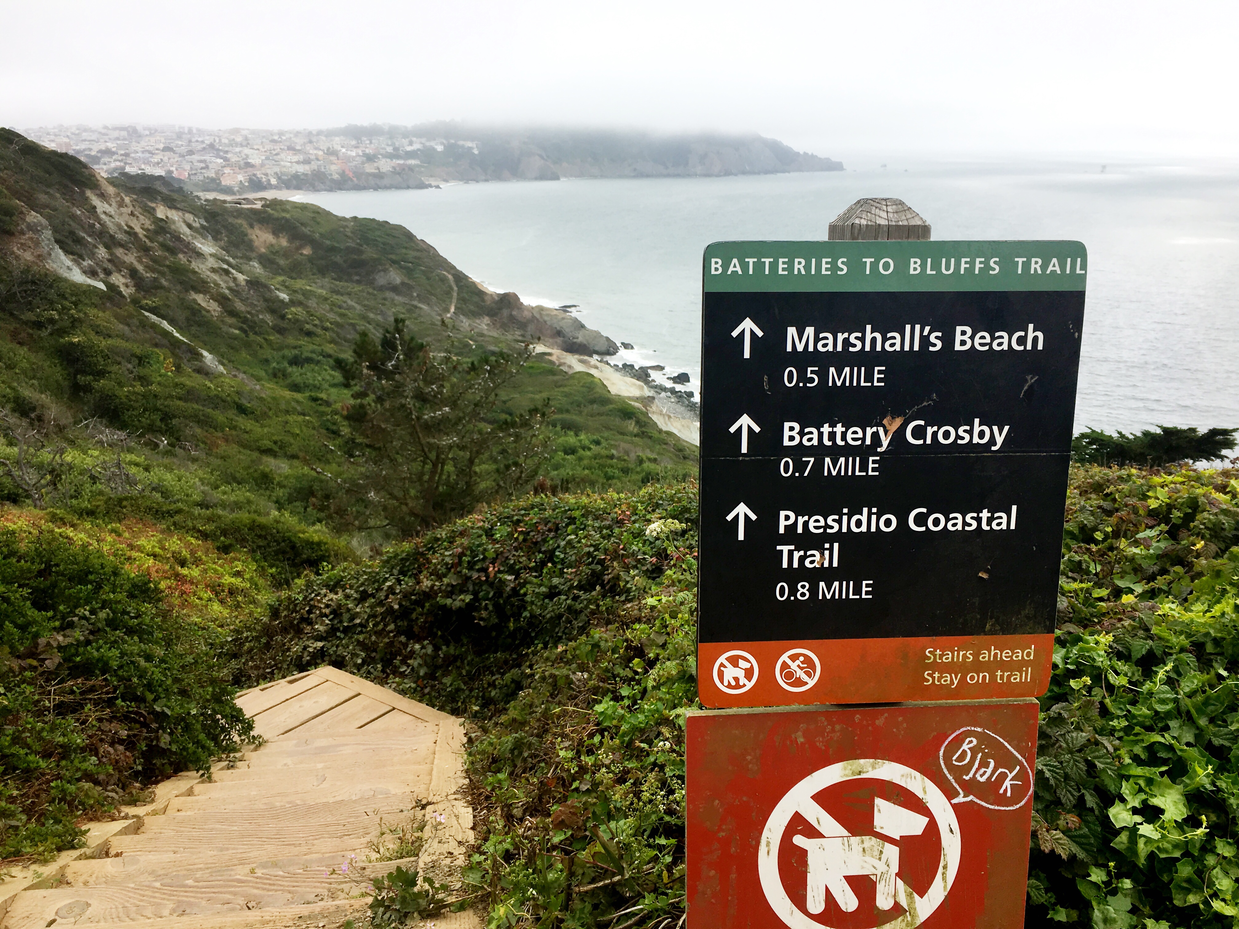 After the race expo, I headed out on a long walk/hike on part of the San Francisco Bay Trail, then to the Battery to Bluffs trail and then the Presidio/California Coastal Trail that would take me to Marshall’s Beach, the Battery Crosby, Bakers Beach, China Beach and eventually to the Lands End Trail. I enjoyed approximately 6.5 miles of rocky cliffs, ocean wind, Golden Gate Bridge views, historic batteries, coastal plants and views that will never be forgotten. This San Francisco Bay Trail/bike path is currently 350 miles and will one day connect all of the San Francisco Bay communities totaling 500 miles in distance.