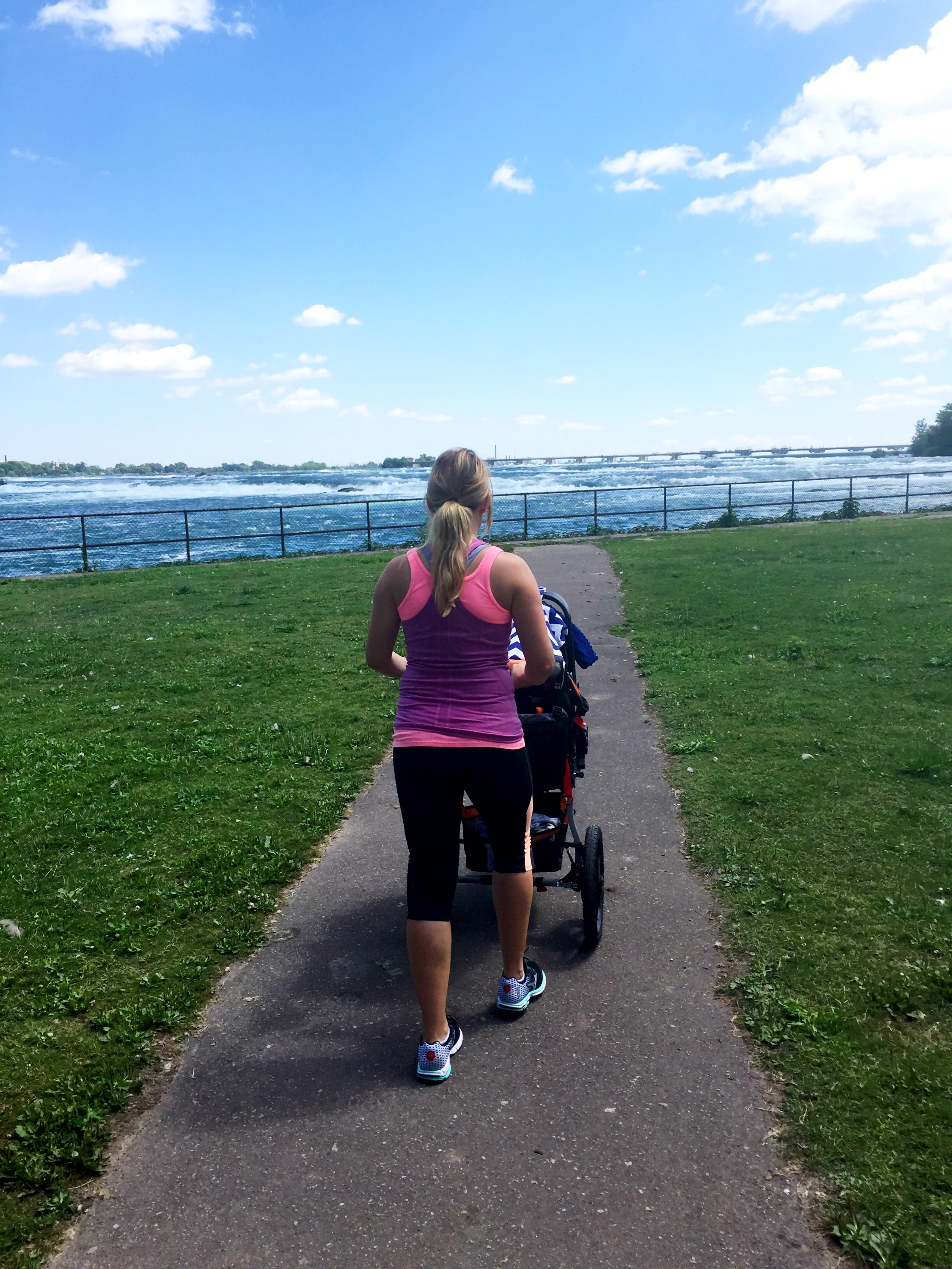 Monday-Walked 4 miles on sidewalk/path along Niagara River leading to Niagara Falls.