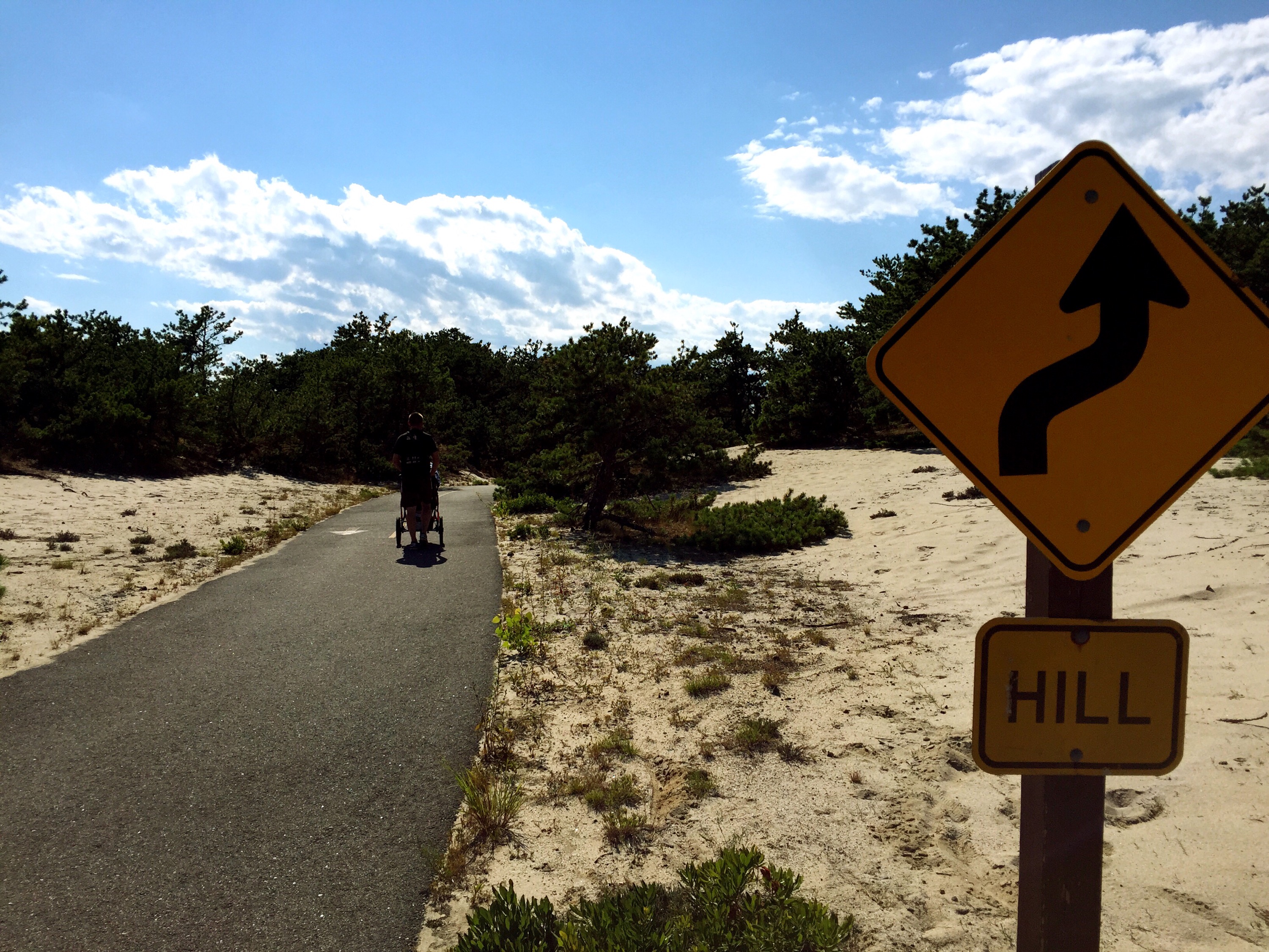 Wednesday-Hilly and hot walk on Province Lands bike trail (7.5 miles) in Cape Cod.