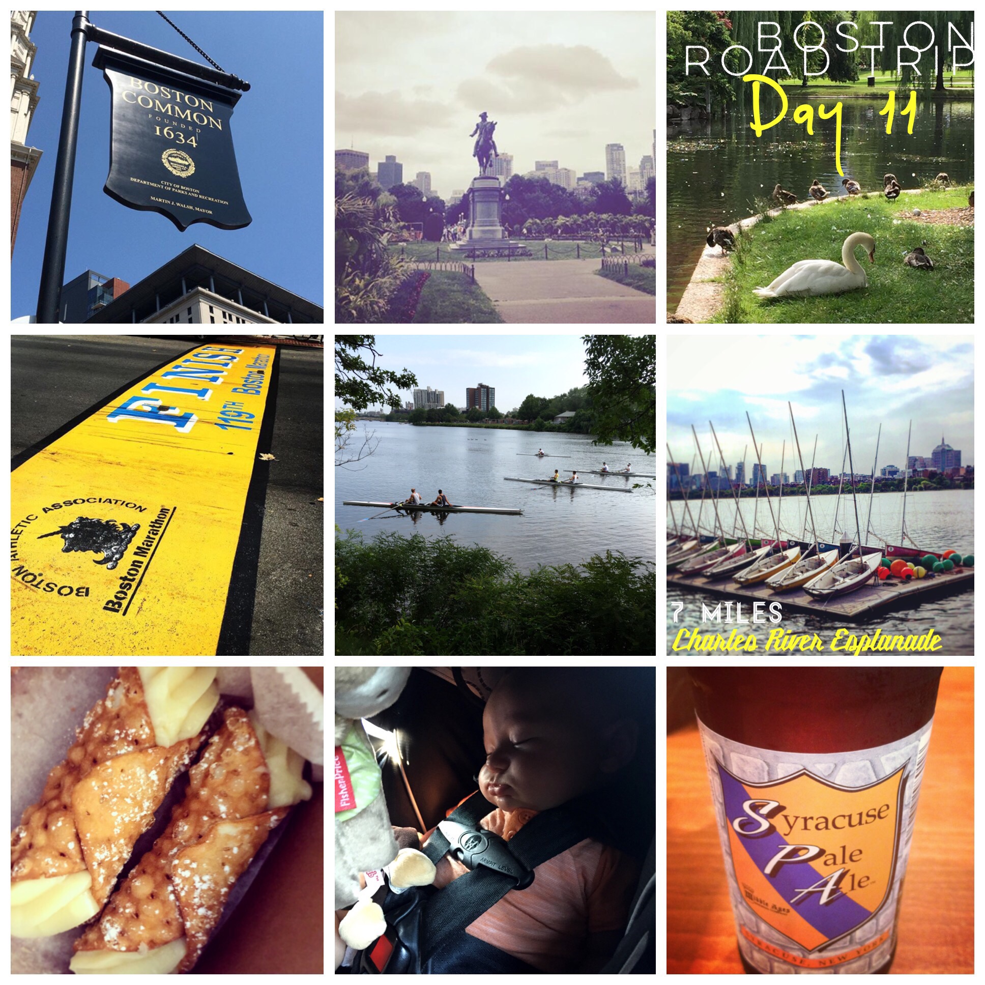 Monday-7 mile run in Boston (Started in Boston Common, to Boston Public Gardens, to Boston Marathon finish line, to Charles River Esplanade loop, finished with fresh cannoli for the husband and family. I had one bite only since I’m dairy free for the baby. Boo!)
