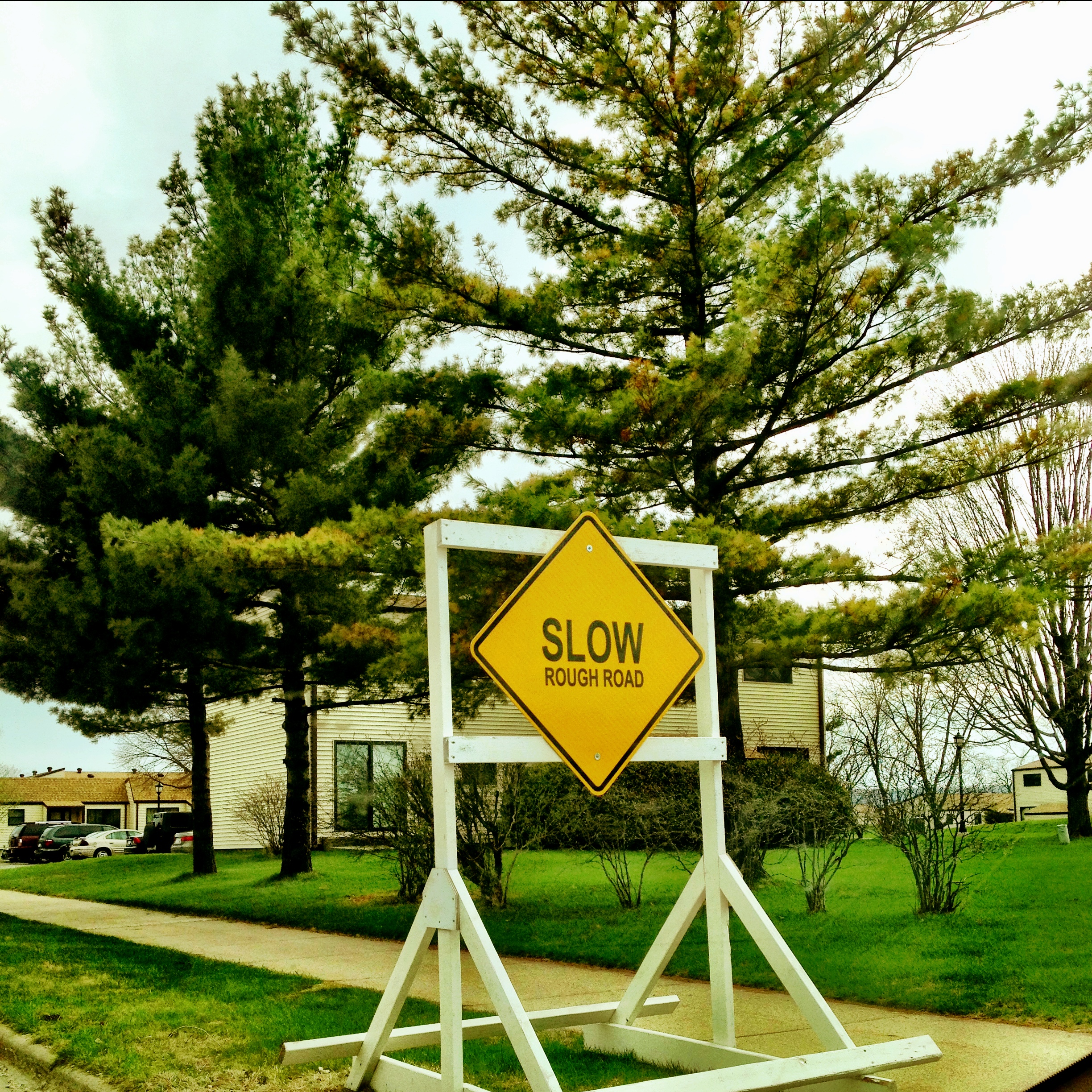 The course continued through residential streets, then onto East Avenue where I am giving my #1 sign award. There was an elderly residential apartment building with lots of young at heart fans cheering on the sidewalks. They had an empty wheelchair with a sign on it that said “quit chair.” I loved this! So creative. It is not often you see people in this age group cheering for runners.