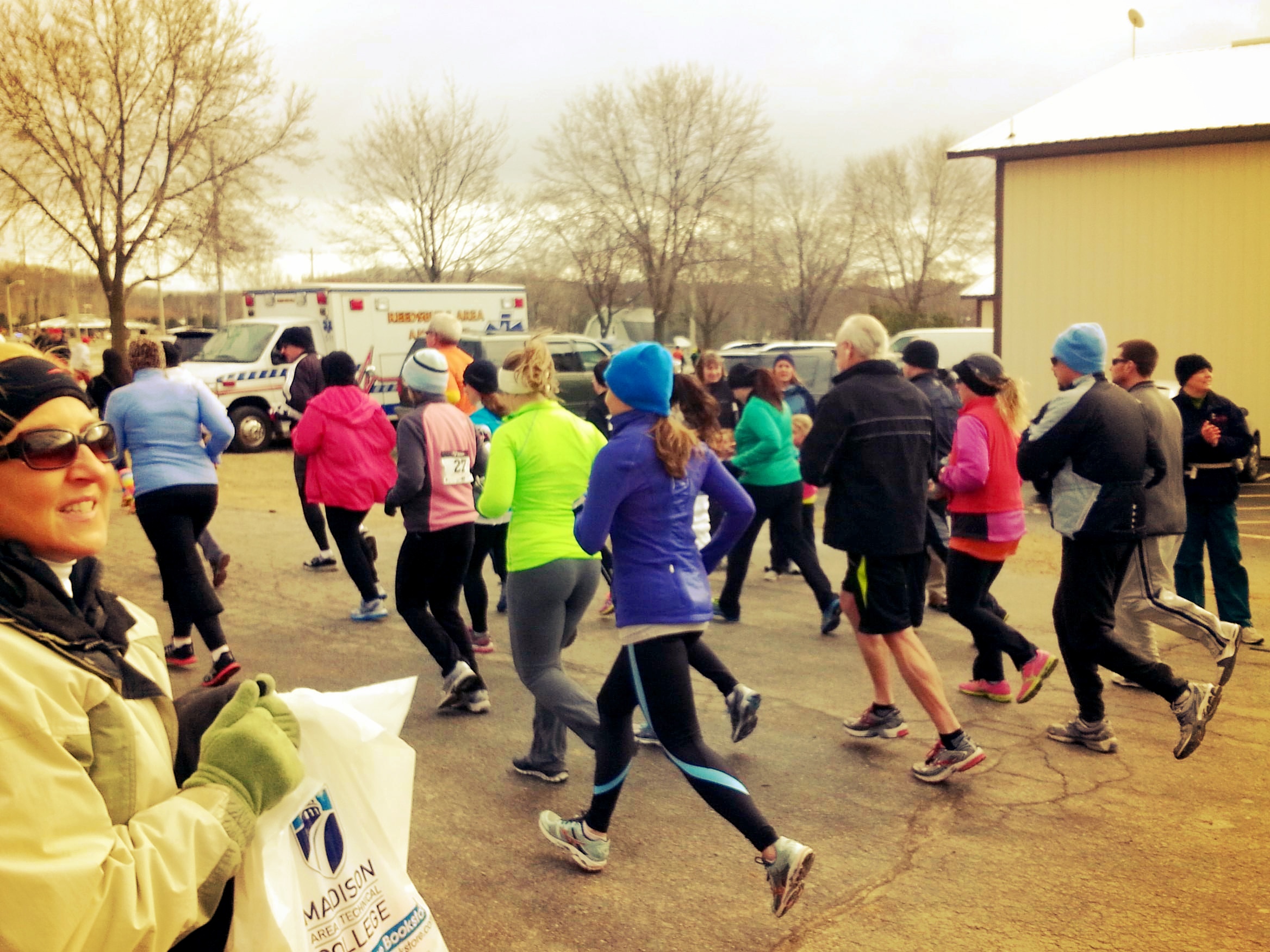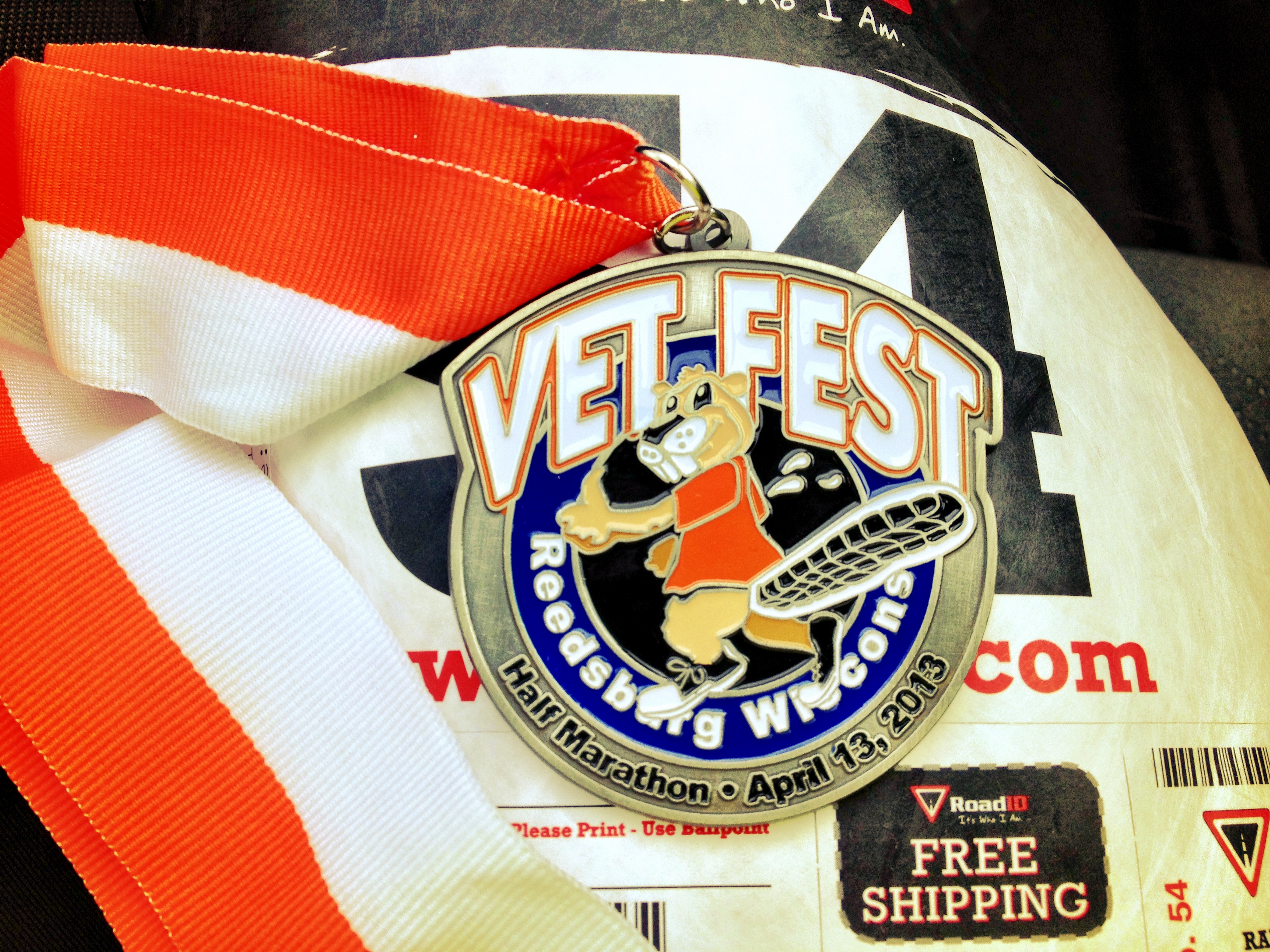 I ran the Vet Fest Half Marathon in Reedsburg a couple of weekends ago. I originally signed up because several of my coworkers were going to be running. I wasn’t particularly excited for the race especially when I woke up to snow on the ground, temperatures in the twenties, and a sore left quadricep. The course ended up being beautiful and the wind and temperatures were actually not too bad once we got the race going. I even enjoyed the hills! I have always ran well on hills, but have never liked running them. The change up in terrain was great on the muscles-my quad never even bothered me.