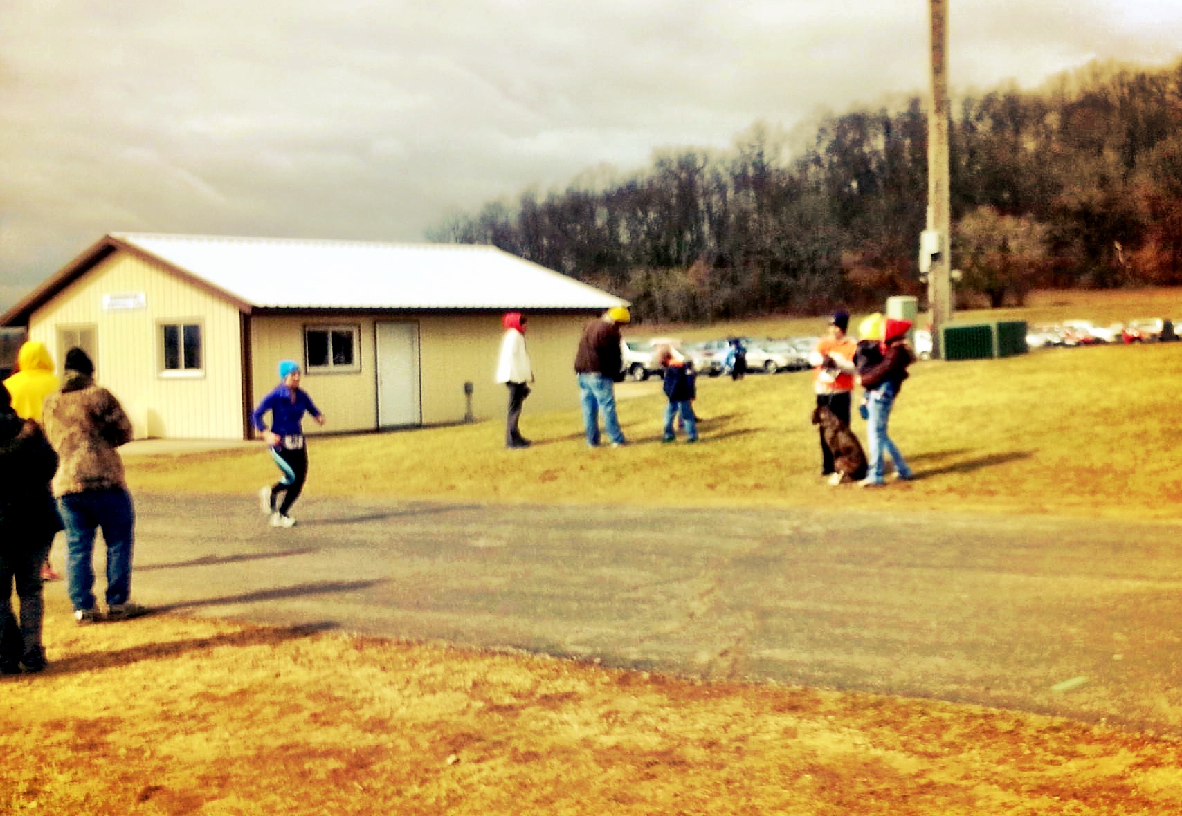 Around mile 5 or 6 I saw the remains of a barn on the side of the road. Growing up behind our backyard there was a similar sight. My sister and I used to play back there and imagine it was still there. We would pretend in the “rooms” and imagine our afternoons away. Seeing this on the course brought back a flood of childhood memories of playing with my sister. Sometimes we played nice singing loudly on our swing set. Other times we didn’t. Like the time our red wagon was jump rope tied to the back of my bike and she was sitting on something in the wagon. She said something that made me mad, so I purposely took the next corner way too fast and tight so she would go flying out of the wagon. Oh, sisterly love!