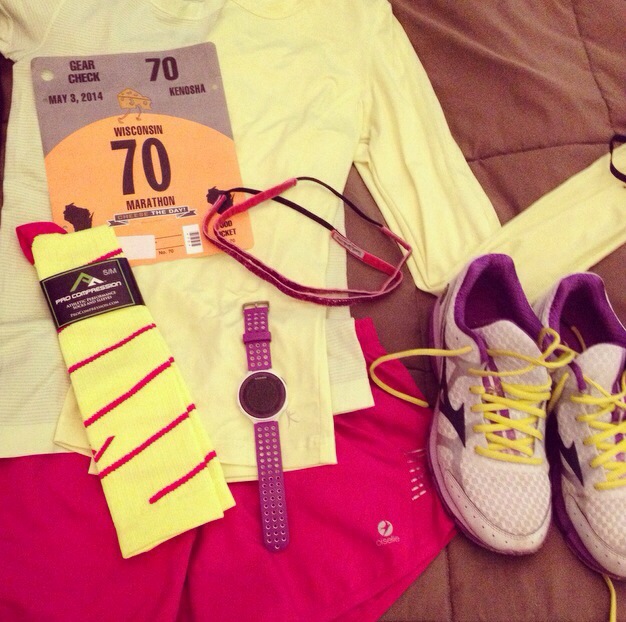 Friday evening we left town to stay in a hotel just outside of Kenosha. We stopped at an Olive Garden in Madison for some pre-race fuel. We had been saving our Olive Garden gift card we received for Christmas and used Hotwire to get a deal on our hotel room. We arrived to our room at 9:30, laid out our outfits for the next morning and got to bed around 10:30. This may be the most rest I’ve gotten the night before a race in a long time.